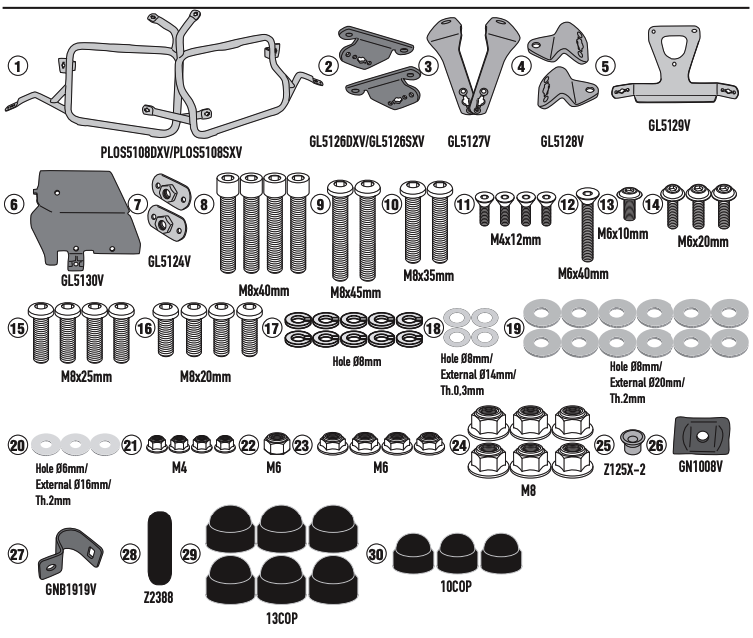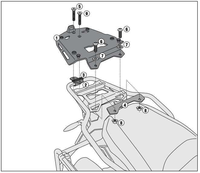 *The motorcycle image shows a 58-liter trunk and not a 42-liter one that will be served in the kit.