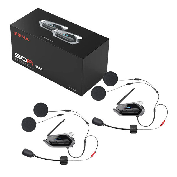 Two Bluetooth Sena 50R Intercoms for helmet allows up to 9 different channels for communication with HD Surround Sound maximum distance of 2km expandable to 8km from 6 users in Mesh minimum Ref. 50R02D