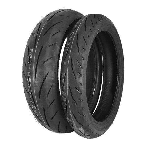 Discover the Bridgestone BATTLAX S23 tire set, the revolution in sport performance. Equip your motorcycle with this tire set consisting of a 120/70 ZR 17 W58 TL front tire and a 190/55 ZR17 75W TL rear tire from Bridgestone, model Battlax S 23.