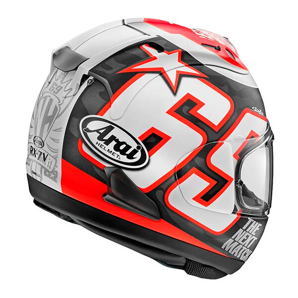 Arai RX-7V Evo Hayden Reset full-face racing helmet, handmade with a perfect interior fit. It incorporates an innovative PB-SNC2 outer shell, a revolutionary VAS screen, a double-d closure and is prepared to house a communication system (not included).
