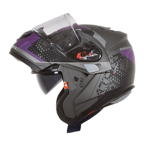 Equipped with an integrated anti-scratch optical polycarbonate sunscreen, with a quick screen exchange system. The flexibility and resistance of polycarbonate guarantee maximum safety and a wide field of vision without distortion. Airtight screen that prevents air from entering and ensures perfect drivingin.