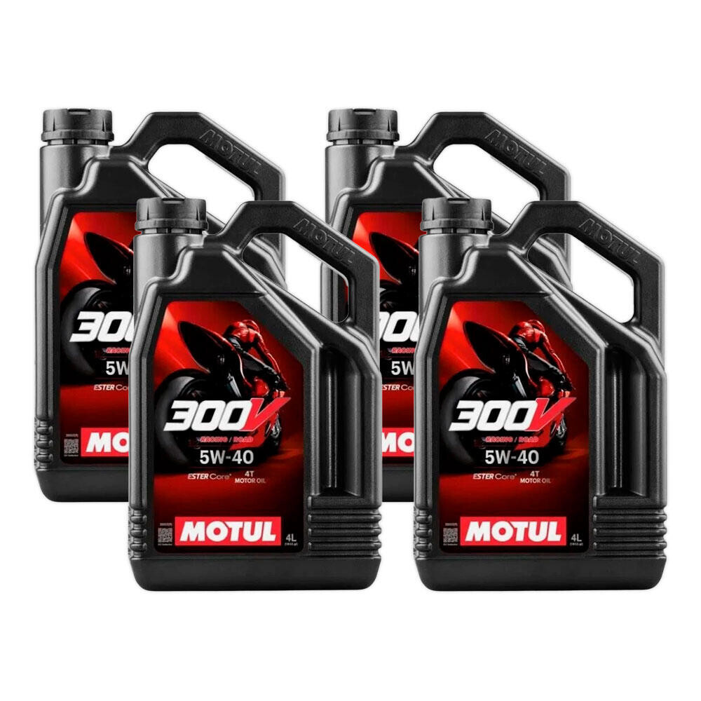 Motul 5W40 300V Road Racing competition oil is a 100% synthetic, double ester oil for motorcycles with 4-stroke competition engines, with or without integrated gearboxes, with or without wet clutches.