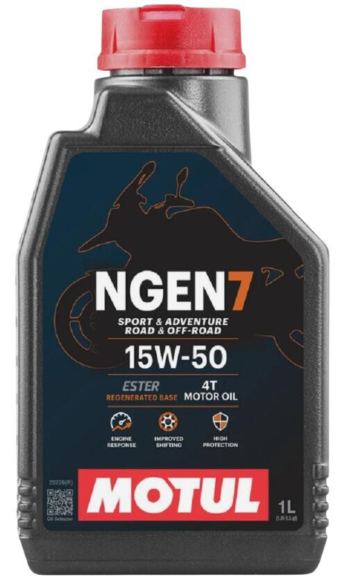MOTUL NGEN 7 15W50 is the best-in-class 4-stroke engine oil, based on a combination of the finest virgin base oils and additives blended with high-quality synthetic esters and reclaimed oils.