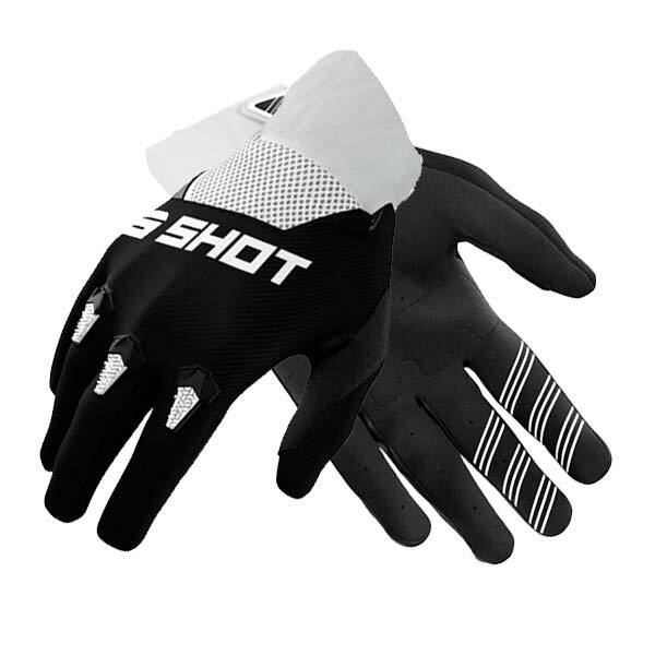 Shot motocross gloves, high-end at the most affordable price. New fitted cut, neoprene cuff and lycra reinforcement between the fingers, to achieve the perfect fit and optimal control.