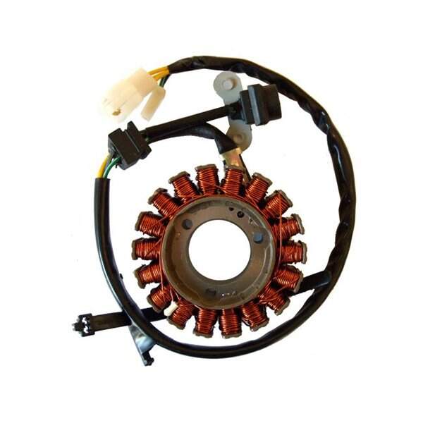 18-pole three-pole stator for Kymco 250 engines 4 carburetion times, with 2-wire pick-up included.