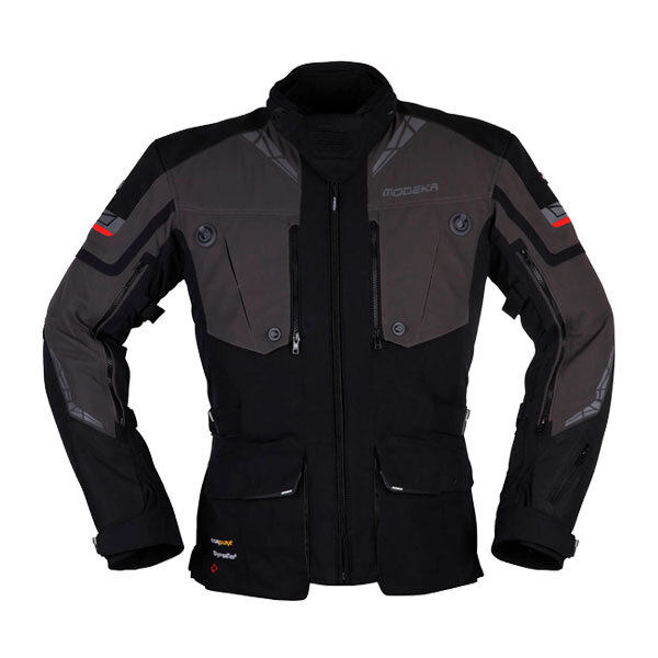 Modeka 3-in-1 super-ventilated waterproof motorcycle jacket. Made from 750D Tactel fabric and 1000D Cordura (100% polyamide), with AirVent ventilation zippers.
